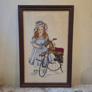 Materiaal : Geboduurd tafereeltje in Oude donkerbruine Houten Lijst met glas